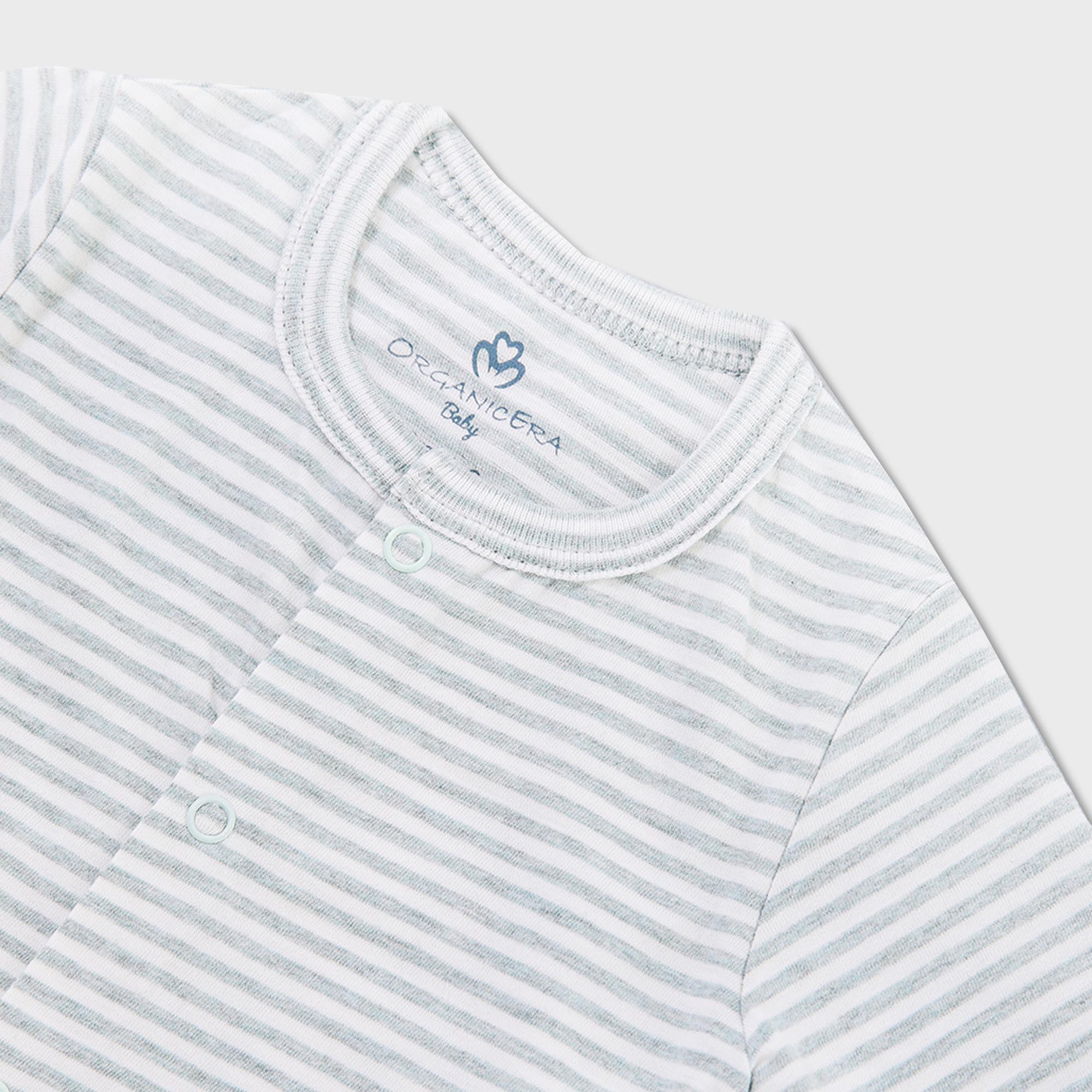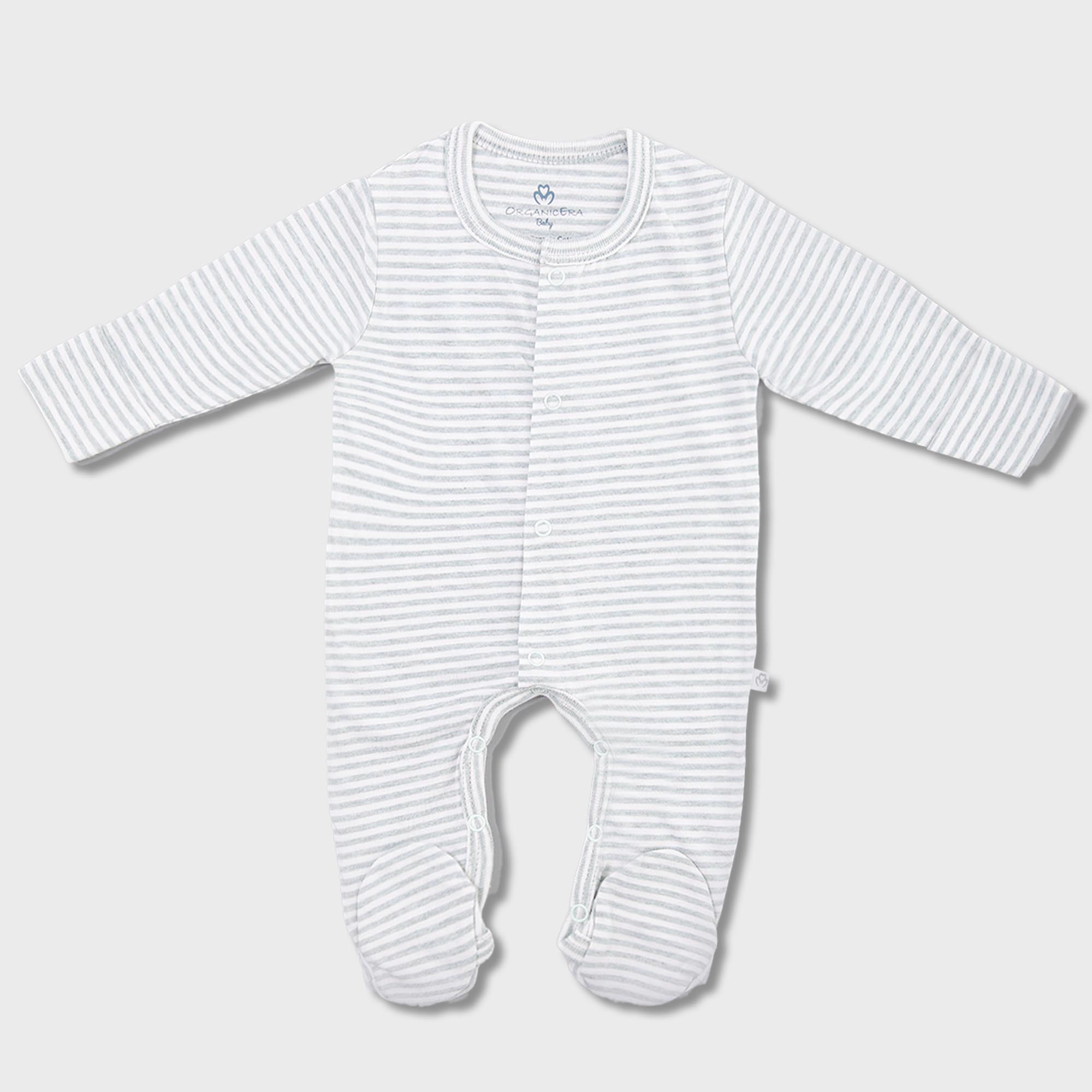 OrganicEra Organic Baby Footed Sleepsuit, Striped, Aqua Melange