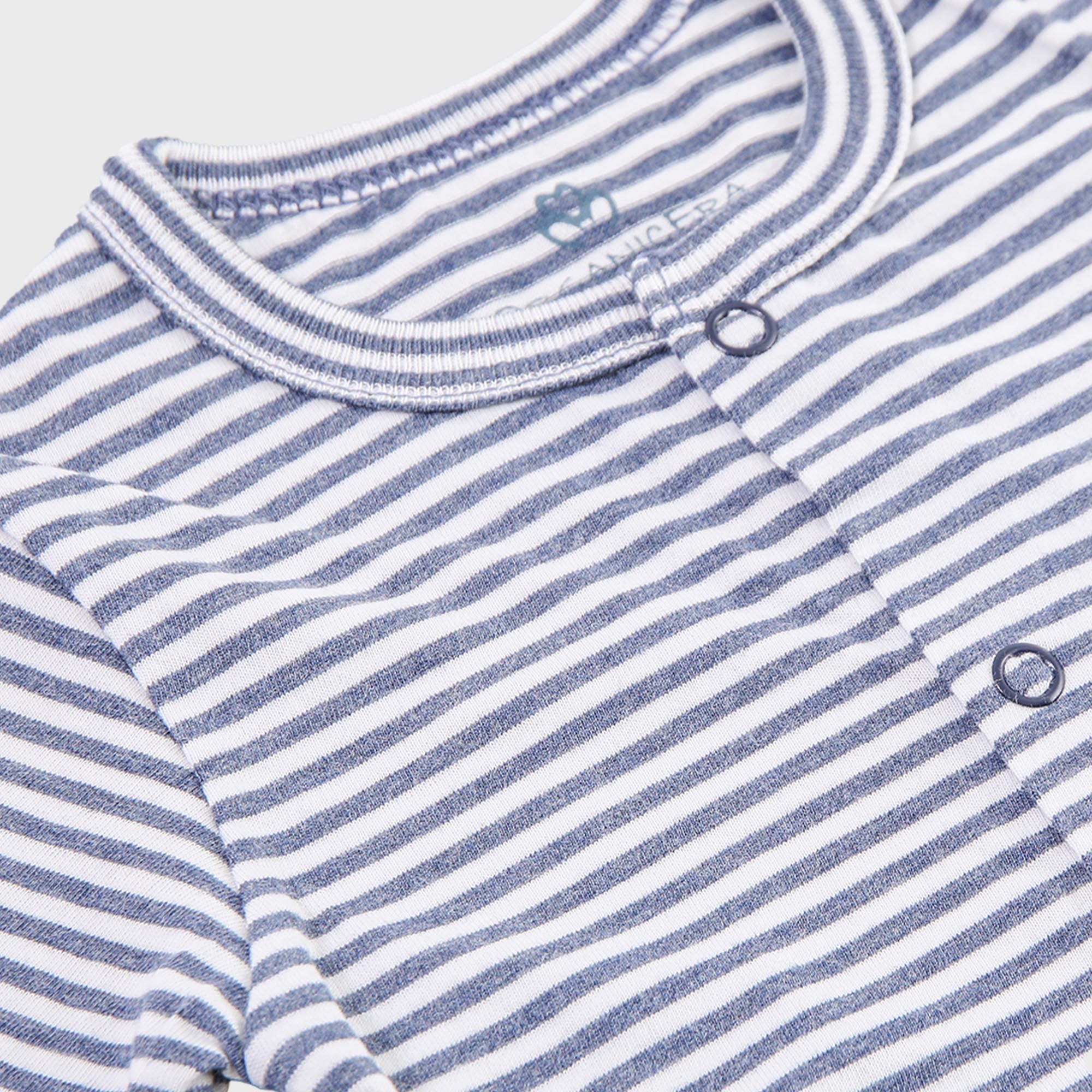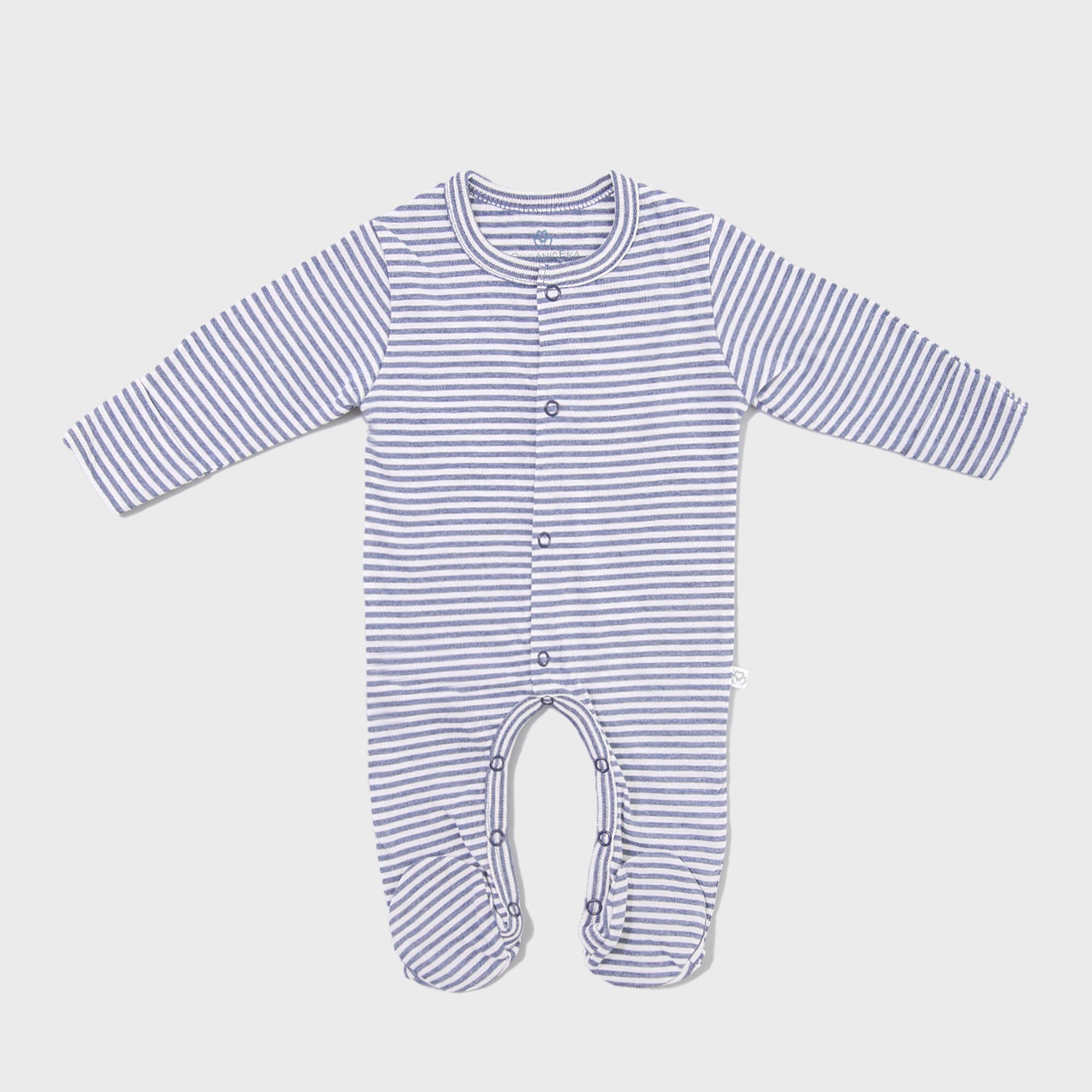 OrganicEra Organic Baby Footed Sleepsuit, Striped, Indigo Melange