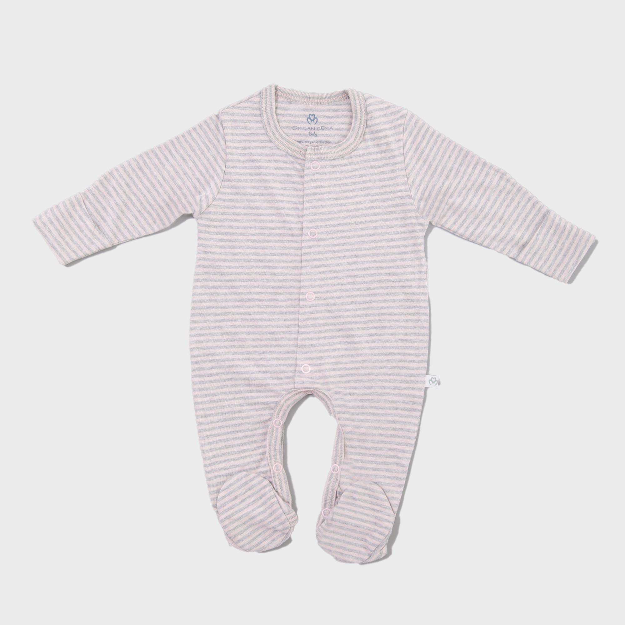OrganicEra Organic Baby Footed Sleepsuit, Striped, Rose Melange