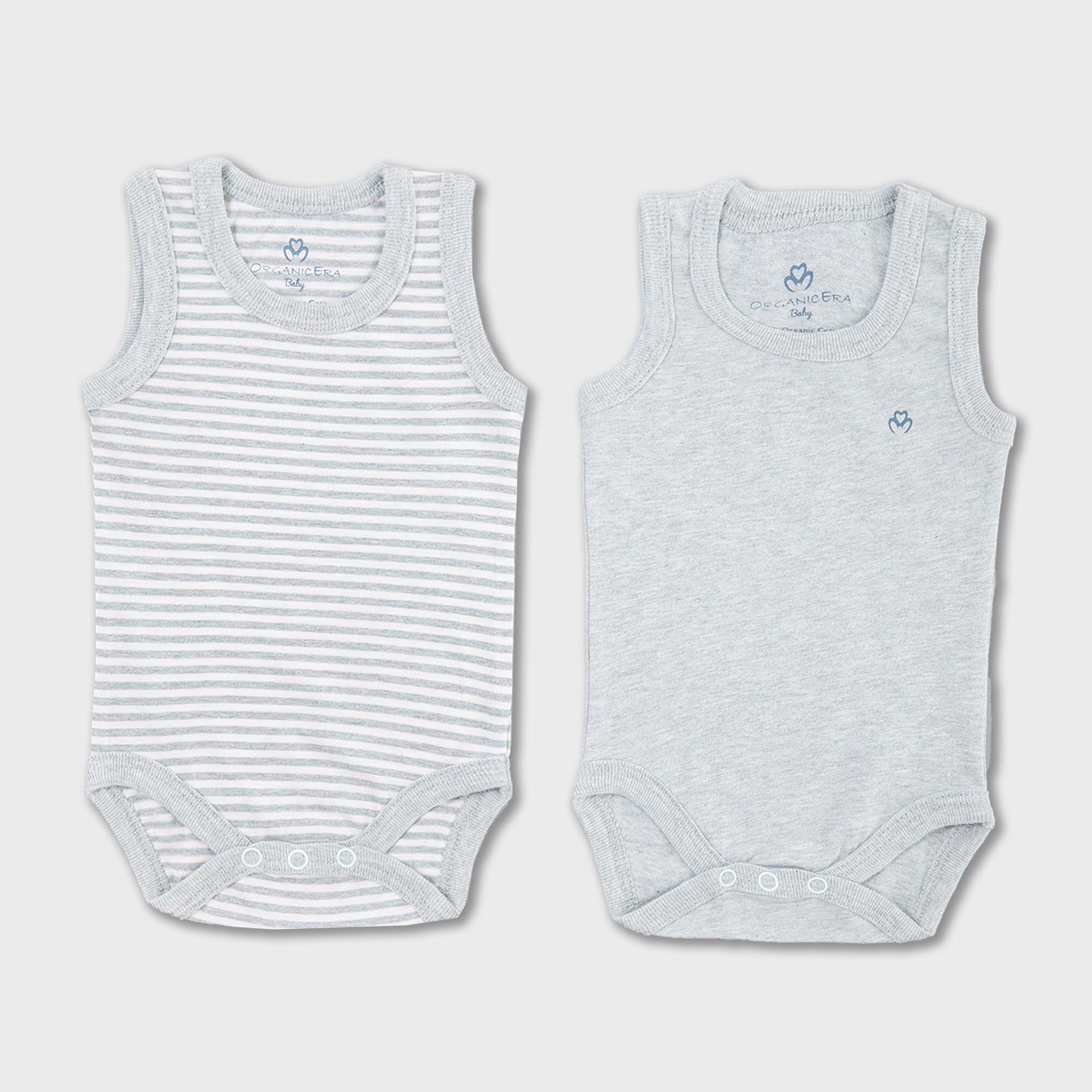 OrganicEra Organic Baby Sleeveless Bodysuit, 2 pcs Set, Aqua Melange